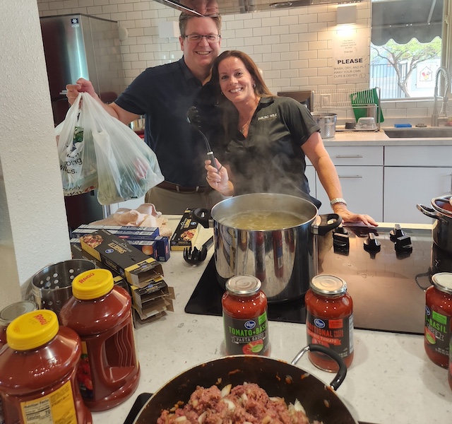 Jaburg Wilk employees served dinner to families at the Ronald McDonald House recently. It was exciting as this was the first time, since the pandemic, that employees were able to interact with families staying at the RMHC house. Our volunteers cooked a dinner of spaghetti, garlic bread, green salad, vegetables, and warm cookies. Apparently, dinner was a hit, especially the cookies!