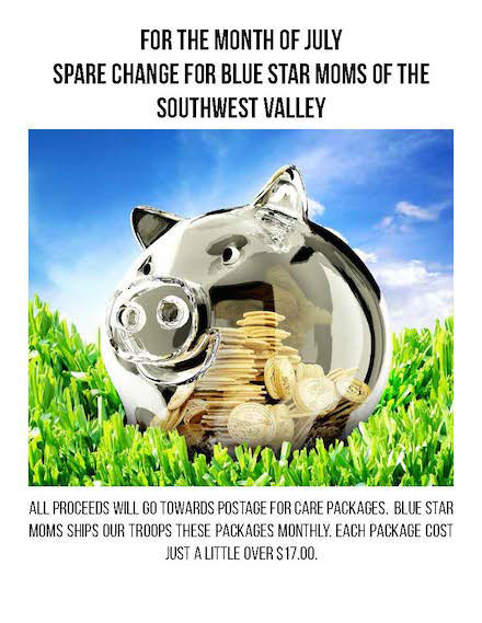 Who knew that collecting change would add up to so much?  Jaburg Wilk employees dropped their change into a piggy bank for a few weeks and collected more than $170 in change. Blue Star Moms sends packages to active overseas service members and our little bit of change paid for shipping for several care packages.