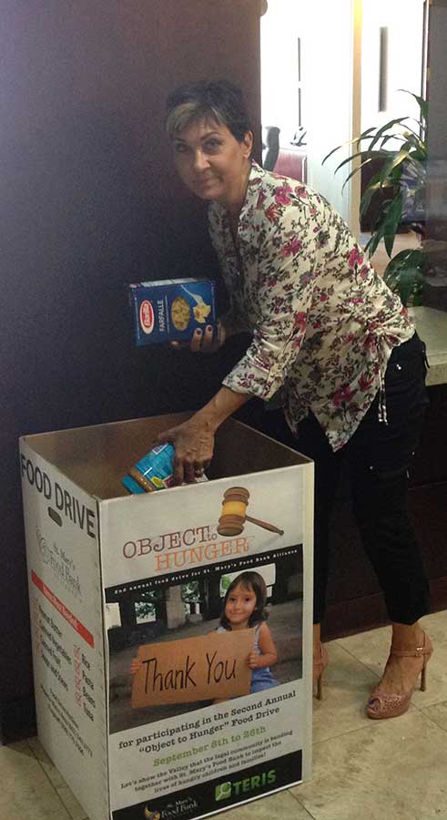 Jaburg Wilk  had a great time participating in the 2nd annual Object to Hunger food drive hosted by Teris.  All food and monetary donations were donated to St. Mary’s Food Bank Alliance. 1 out of 4 children in Arizona live in poverty. 1 out of 5 adults live in poverty. 1 in 7 seniors live in poverty. To learn how you can help St. Mary’s Food Bank Alliance, visit http://www.firstfoodbank.org/